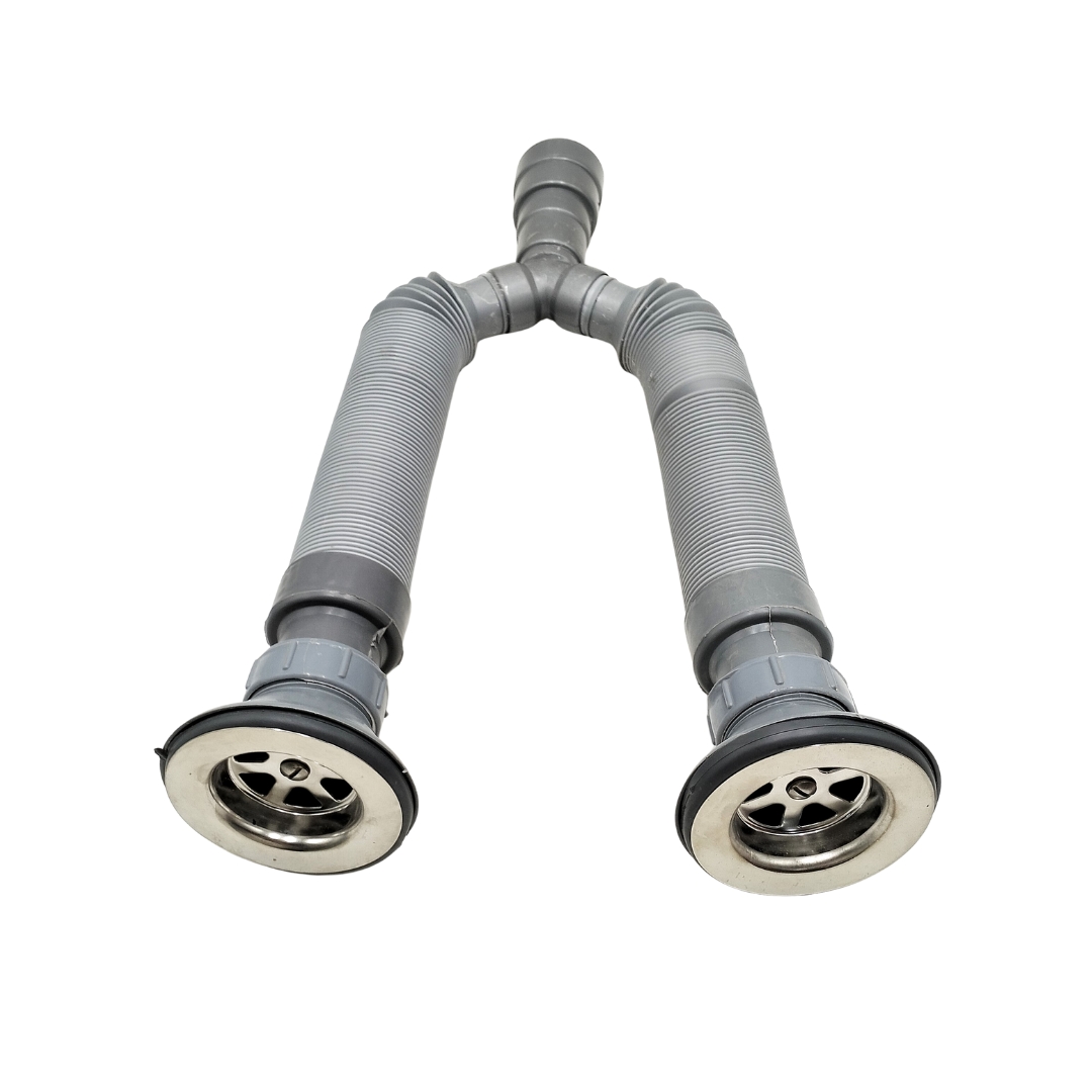 انبوب صرف حوض مطبخ اينوكس رمادي مزدوج مرن
